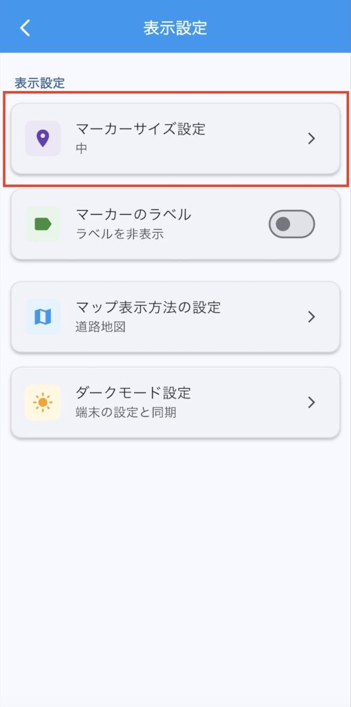 マーカーのサイズは「大」「中」「小」「極小」から選ぶことができます。