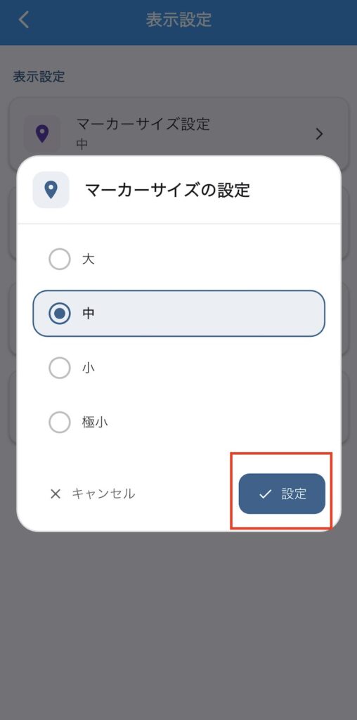 設定したいサイズを選択のうえ、「設定」をタップします。