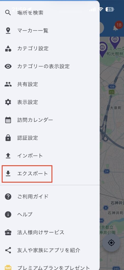 マーカーの情報はGPXファイルでエクスポートをして、他のアプリなどにインポートができます。