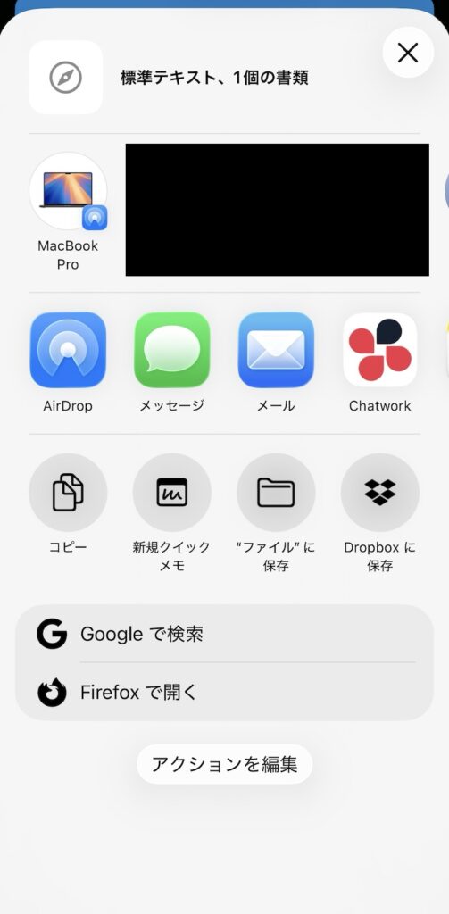 端末内に保存をするのはもちろん、チャットアプリなどでファイルをそのまま送信することも可能です。